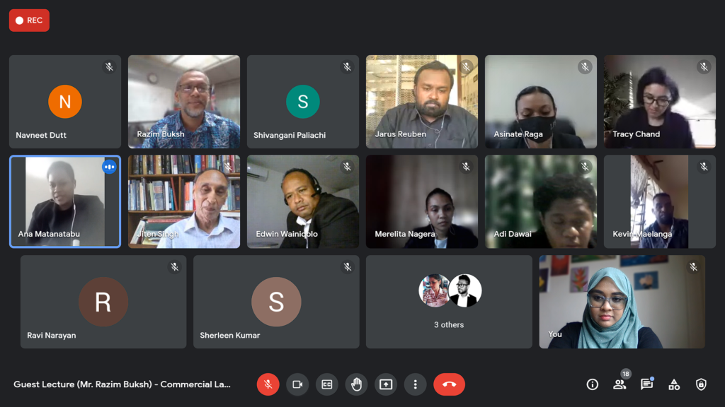 Mr. Razim Buksh, Director of the Fiji Financial Intelligence Unit (FIU), delivered a special virtual lecture to over 40 Graduate Diploma in Legal Practice (GDLP) and Commercial Law students on October 7, 2021.